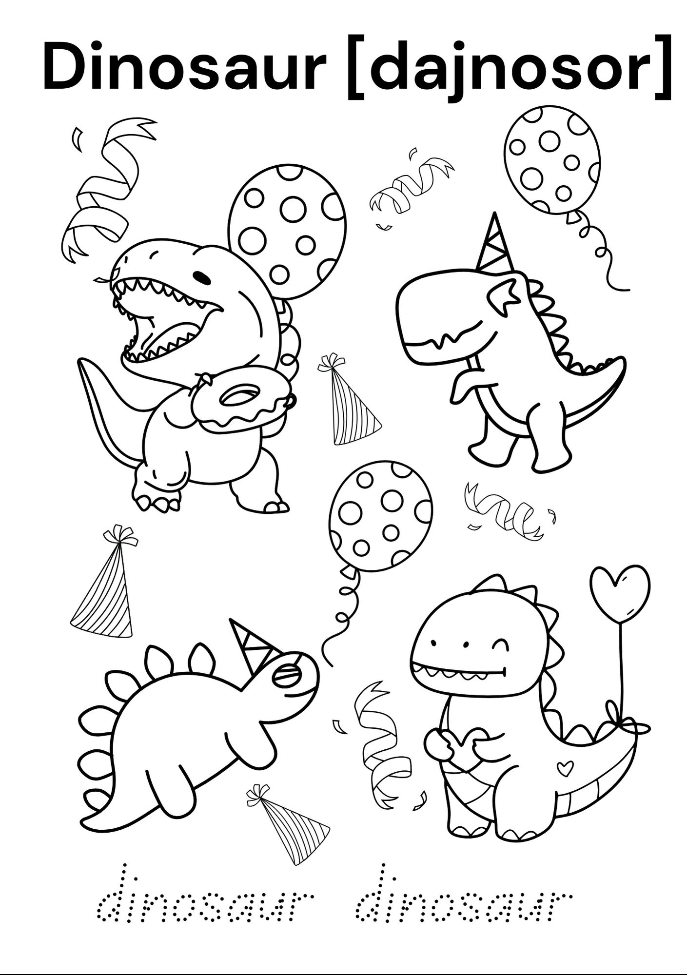 Kolorowanie, zabawa i nauka języka angielskiego dla pasjonatów świata dinozaurów.